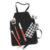 Strong woven polyester apron with oven glove, salt and pepper shakers, stainless steel spatula, fork and tongs. Great in promoting your brand and being well prepared for your BBQ.