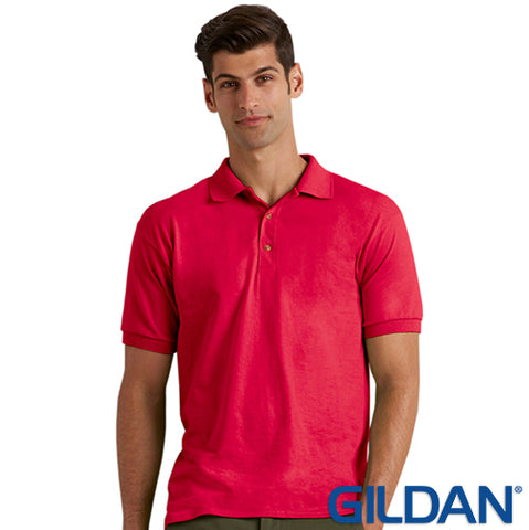 Personalised Gildan DryBlend Polo Shirts have moisture wicking fabric to help draw sweat and perspiration from the skin and out to the exterior of the fabric. A classic fit jersey that is made from 50% cotton and 50% DryBlend polyester. Textile weight of 190 g/m2 (185 g/m2 in White). A great pre shrunk polo shirt that is ideal for work or casual wear and comes in 14 colour choices.
