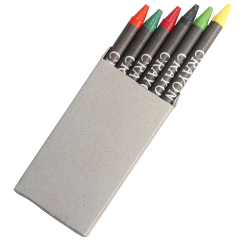Promotional 6 Piece crayon set in a recyclable box with certification to EN71. This low cost crayon set is great from childrens promotions or as part of a goody bag.